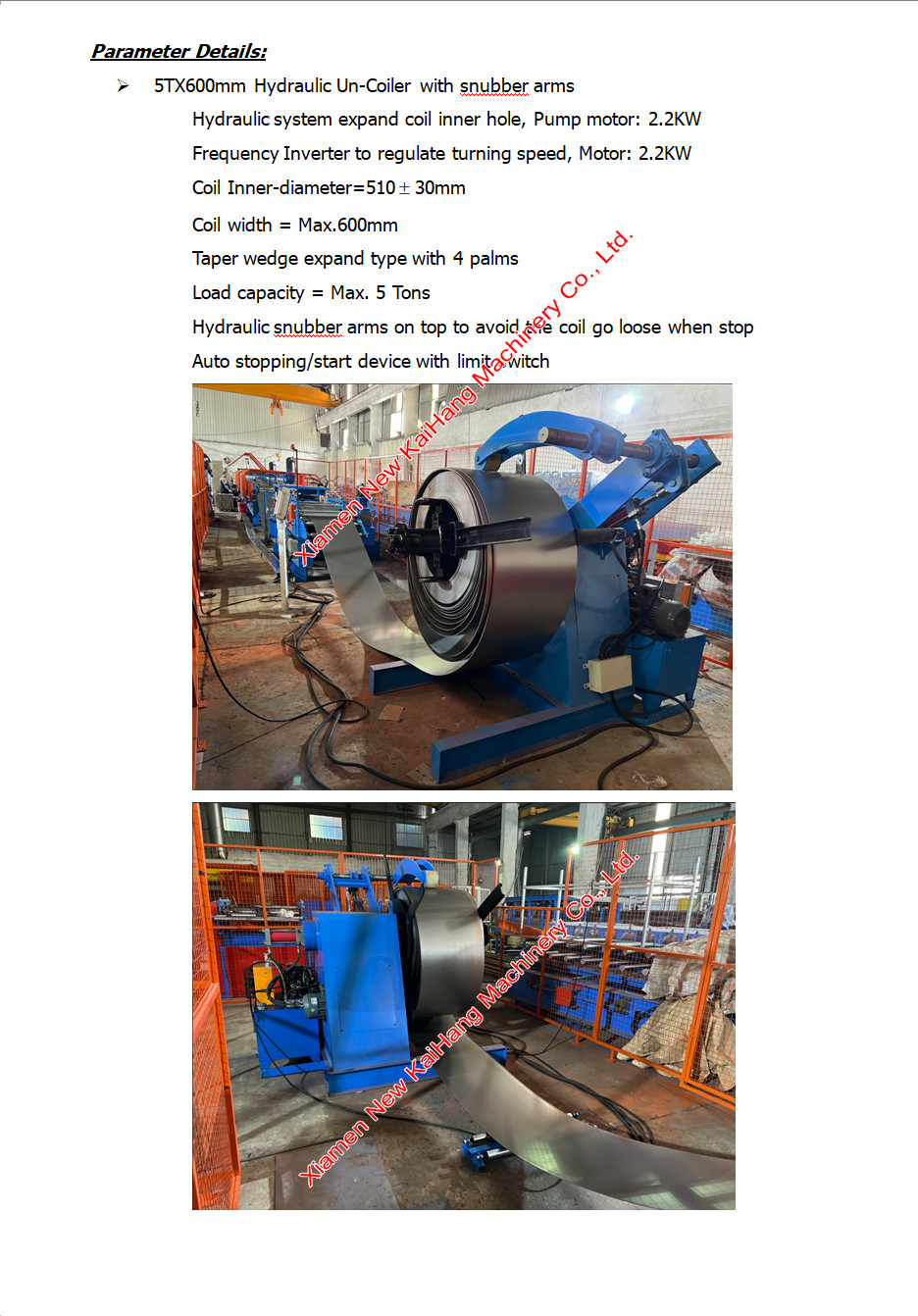 5TX600mm Hydraulic & Driven Un-Coiler with top arm